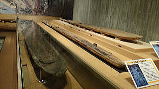 遺跡から出土した丸木舟(縄文後期・晩期)