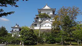 修し、大坂城に次ぐ高石垣の直線が美しい伊