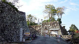 松坂城の裏門跡をでると、石畳に槇垣が美